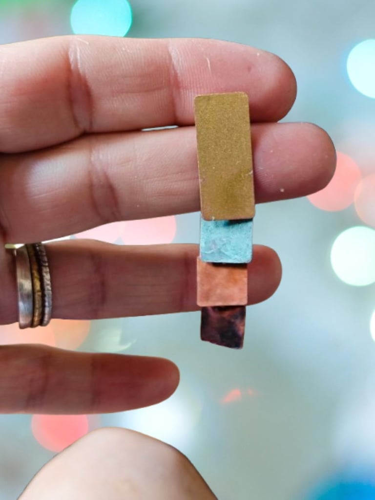Los pendientes Shanon destacan por si acabado en latón patinado, una técnica de joyería artesanal que otorga a cada pieza un carácter único y orgánico.