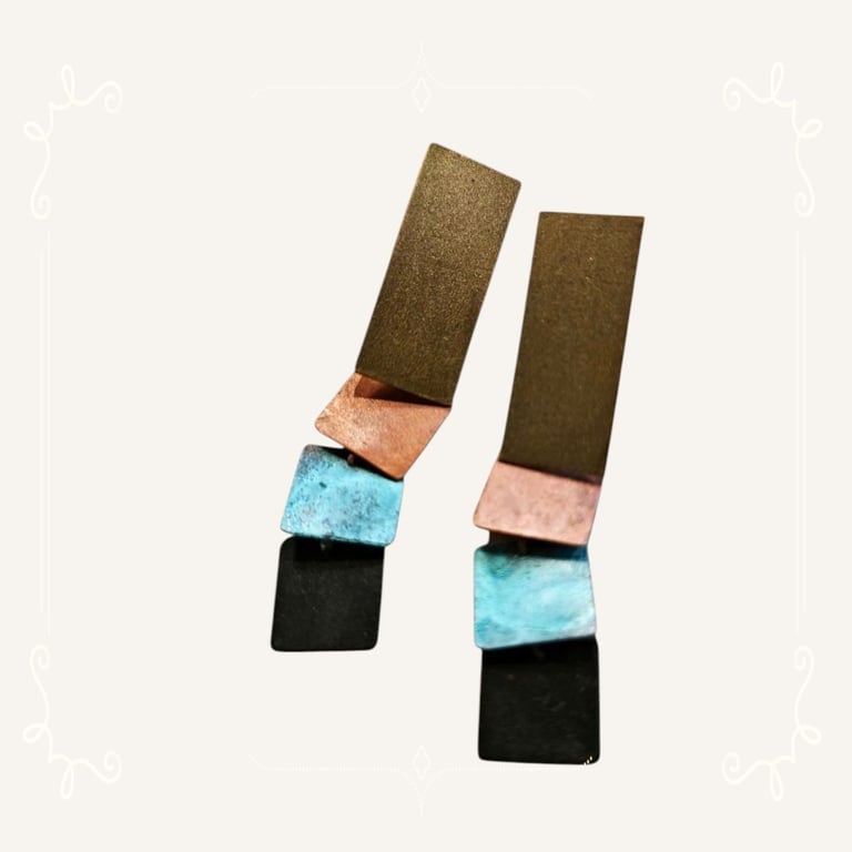 Diseñado en nuestro taller de Madrid , estos pendientes combinan la estética contemporánea con la belleza de los metales oxidados y texturizados.